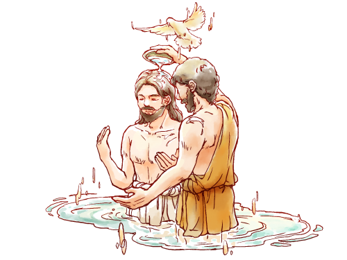きょうは主の洗礼の祝日です。クリスマスから2週間たち、今日は降誕節の最後の日です。イエスの洗礼の出来事は、イエスが神の子として現される、という降誕節のテーマの一つの頂点です。またイエスが神の子としてのデビューを記念する日でもあります。マタイ福音書では2章の東方の博士たちの訪問の後、聖家族は夢のお告げで、エジプトへ避難したことが書かれています。ヘロデ王が死んでからイスラエルに戻り、ガリラヤのナザレに住んだと書かれています。ルカ福音書にはイエスの少年時代、12歳の時に神殿で迷子になったこと(ルカ2.41-50)とナザレで両親と共に暮らしたことが書かれています。それから今日の洗礼者ヨハネからの洗礼までなにも記録されていません。ルカはイエスが宣教活動に入ったこの時は30歳の頃であったと書いています(3.23)。これ以降を公生涯と言います。公生活に入ってからヨセフはもう登場しないため、すでに亡くなっていたと思われます。イエスは人々から大工の息子とみなされていて30歳くらいまで母マリアや親戚の者たちと共にナザレで暮らしていました。わたしは自分が洗礼を受けてから、神父になりたいとキリスト信者でない家族に言った時のことを思い出しました。母や兄弟たちは大学を途中で辞めてしまい、何をするのかよくわからなかったため不安になったみたいです。イエスがガリラヤを離れ洗礼者ヨハネのところに行った時、聖母マリアはどんな気持ちだったでしようか。赤ちゃんの時神殿でシメオンから「この子は逆らいを受けるしるしとなる」(ルカ2.35)と言われていたことを思い出さなかっただろうかと考えました。イエスの洗礼はひとつの区切りでした。罪のないイエスが、罪の悔い改めのための洗礼をヨハネに求められたことは、ヨハネを驚かせました。イエスは、神の義を完全に成就するために、この世の罪人と同じ立場に立って洗礼を受ける必要があると説明されました。洗礼の後、天が開けて神の霊が鳩のように降下し、天からの声がイエスを「愛する子」と宣言しました。これは、父なる神、御子イエス、聖霊なる神の三者が同時に現れる、三位一体の啓示と解釈されます。この出来事によって、イエスが神の御子(メシア)であることが公に宣言され、その後の宣教活動への備えがなされました。